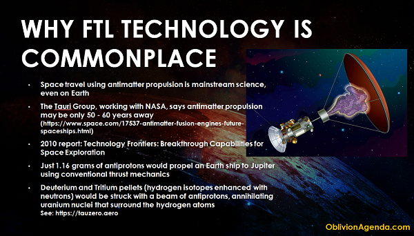 From my Oblivion Agenda slides, I explain why FTL technology is commonplace in the cosmos: